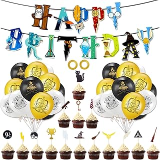 Zauberer Geburtstag Party Deko Set, Harry,Potter Dekoration Ballon und Happy Birthday Banner für Geburtstagsdeko Themenparty für Kinder Jungen Mädchen