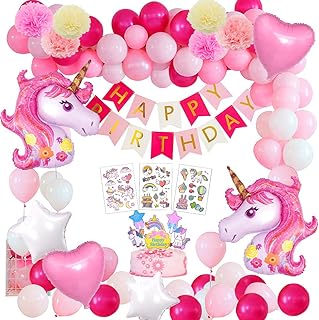 Einhorn Geburtstagsdeko Mädchen, Einhorn Party Deko Geburtstag mit 3D Riese Einhorn Luftballons Rosa Happy Birthday Banner Einhorn Deko Geburtstags Party Supplies fur Kindergeburtstag