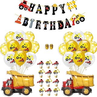 Bagger Geburtstag Deko, BAU Party Dekoration, Baustelle Kindergeburtstag Party Dekoration, Happy Birthday Banner, Baufahrzeug Feuer Auto Folienballons, Bagger Luftballons, Geburtstagdeko Jungen (BAU)