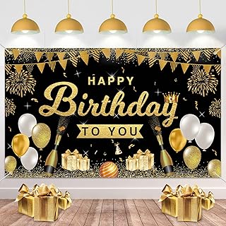 VICSOM Happy Birthday Banner, Geburtstagsdeko Schwarz Gold, Große Geburtstagsbanner Männer, Happy Birthday Hintergrund Poster, Schwarz Gold Geburtstag Party Dekoration Banner für Frau Männ Party Deko