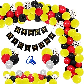 Luftballon Girlande Schwarz Rot Gelb,Konfetti-Ballon,Happy Birthday Banner,Geburtstagsdeko Thema Party Geburtstag Dekoration für Children's Birthday Party Dekorat