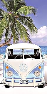 Volkswagen Badetuch VW Bulli T1 Blau 75x150cm 100% Baumwolle in Veloursqualität Camper-Van Bus Oldtimer Strandlaken Strandtuch Handtuch Badelaken Duschtuch Saunatuch Wörthersee Beach Retro Motiv 048