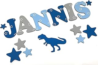 7cm Holzbuchstaben, Türbuchstaben, Kinderzimmer I Tolle Farbkombinationen Jungen Mädchen I Inkl. 2 Sternen sowie Klebepads I Geschenk I Geburtsgeschenk I Taufgeschenk I Kinderzimmerdekoration